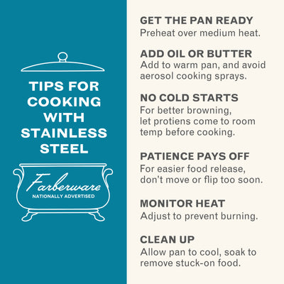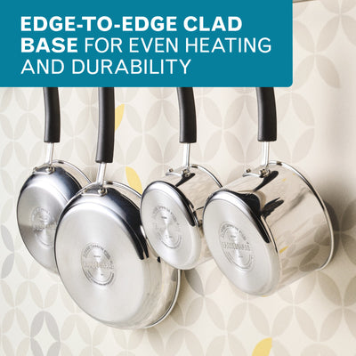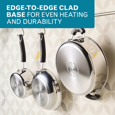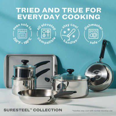 SureSteel by Farberware brings tried-and-true performance to everyday cooking with clad stainless steel for fast, even heating and long-lasting reliability.