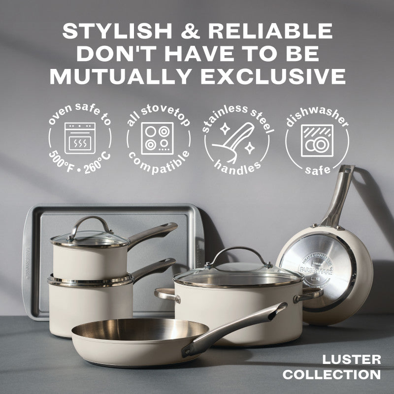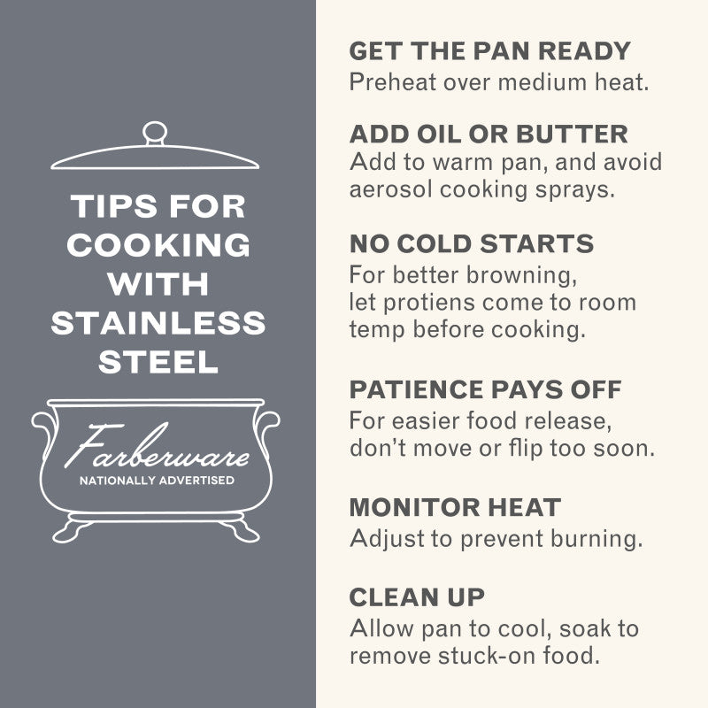 Farberware Luster pairs a modern design with 75 years of exceptional stainless steel performance for a reliable cooking experience that turns everyday meals into extraordinary memories.